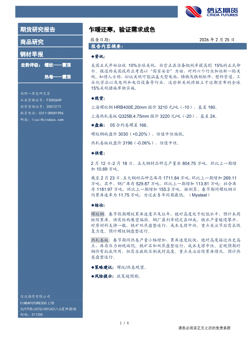 信达期货-钢材早报:乍暖还寒,验证需求成色-260225