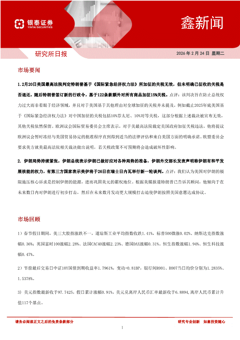 银泰证券-鑫新闻-260224