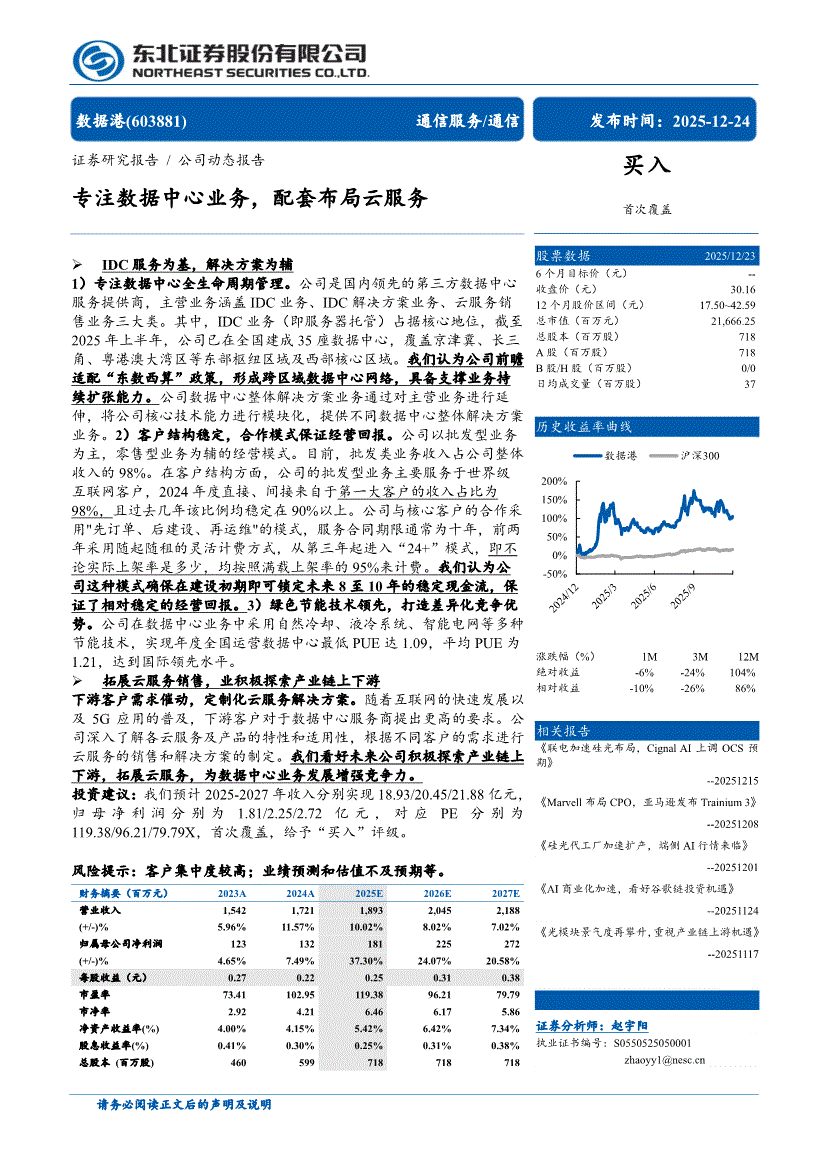 数据港:东北证券-数据港-603881-专注数据中心业务,配套布局云服务-251224