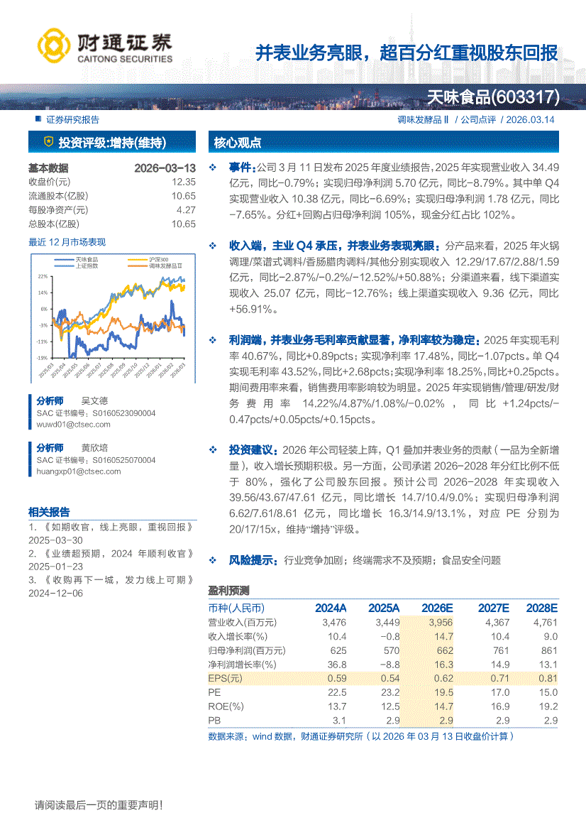 天味食品:财通证券-天味食品-603317-并表业务亮眼,超百分红重视股东回报-260314
