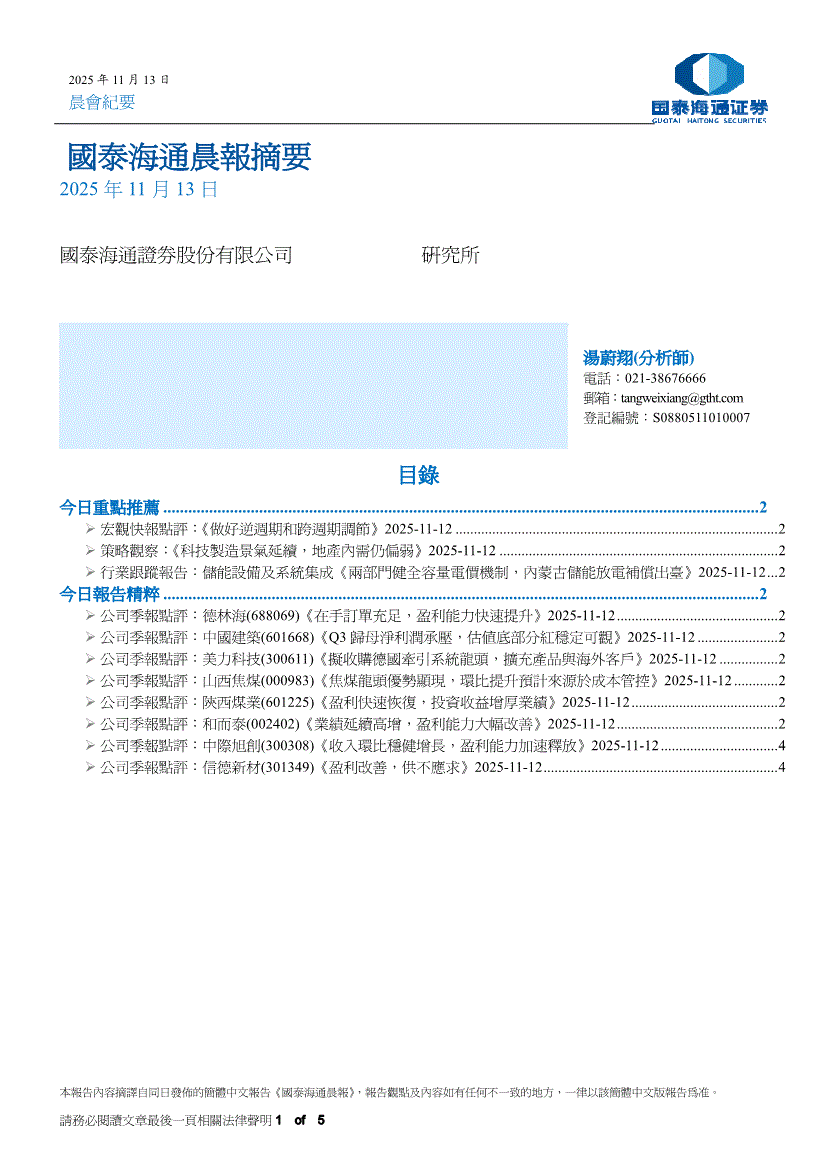 國泰海通证券-晨報摘要-251113