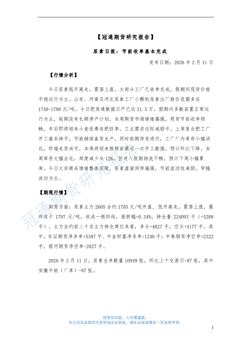 冠通期货-焦煤春节假期持仓报告:关注上下游复产进程-260212