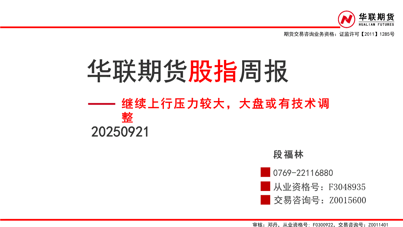 华联期货-股指周报:继续上行压力较大,大盘或有技术调整-250921