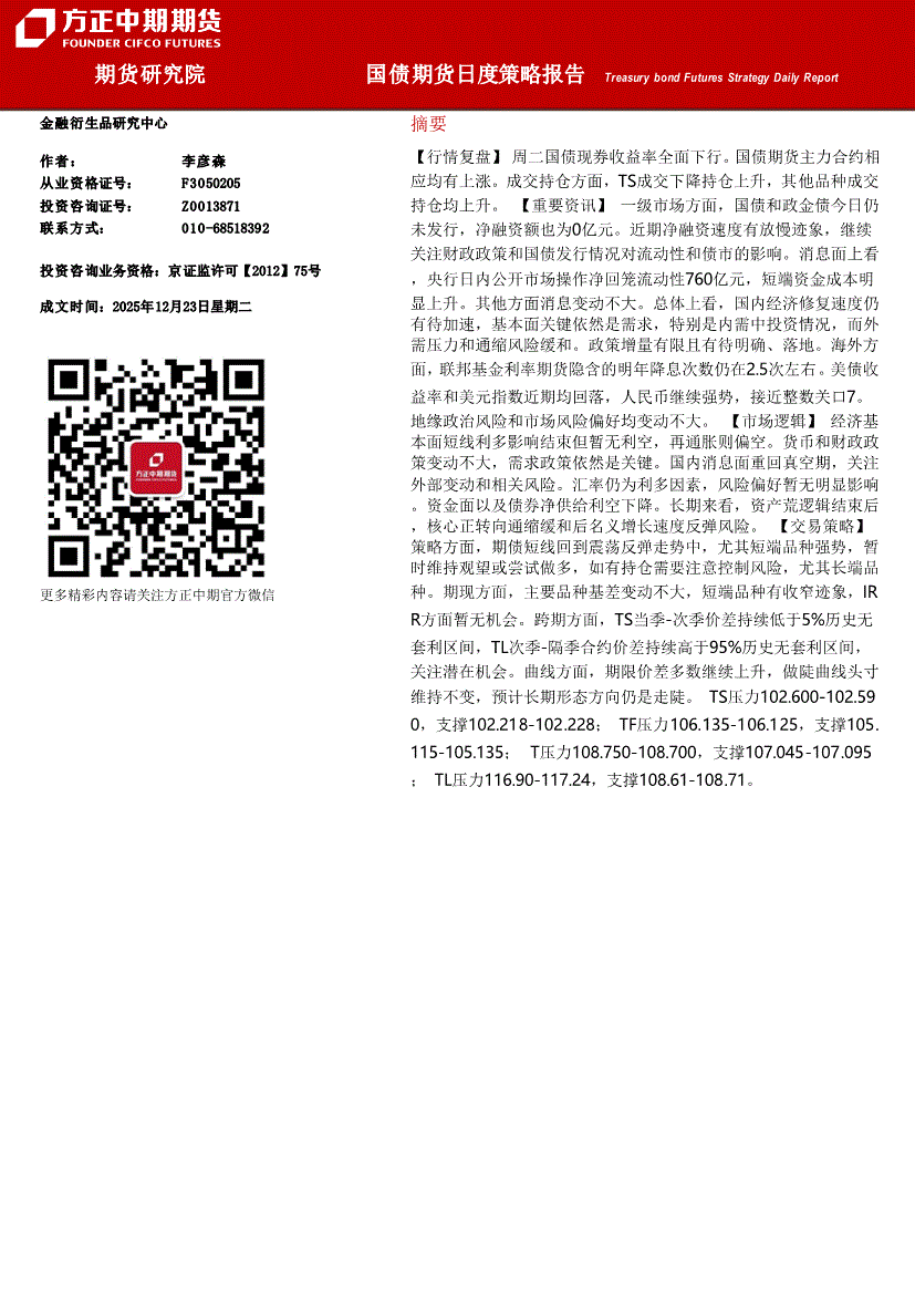 方正中期期货-国债期货日度策略报告-251223