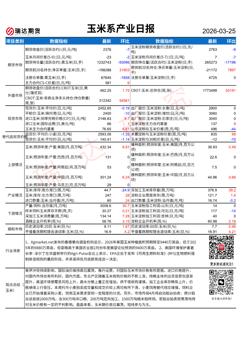 瑞达期货-玉米系产业日报-260326