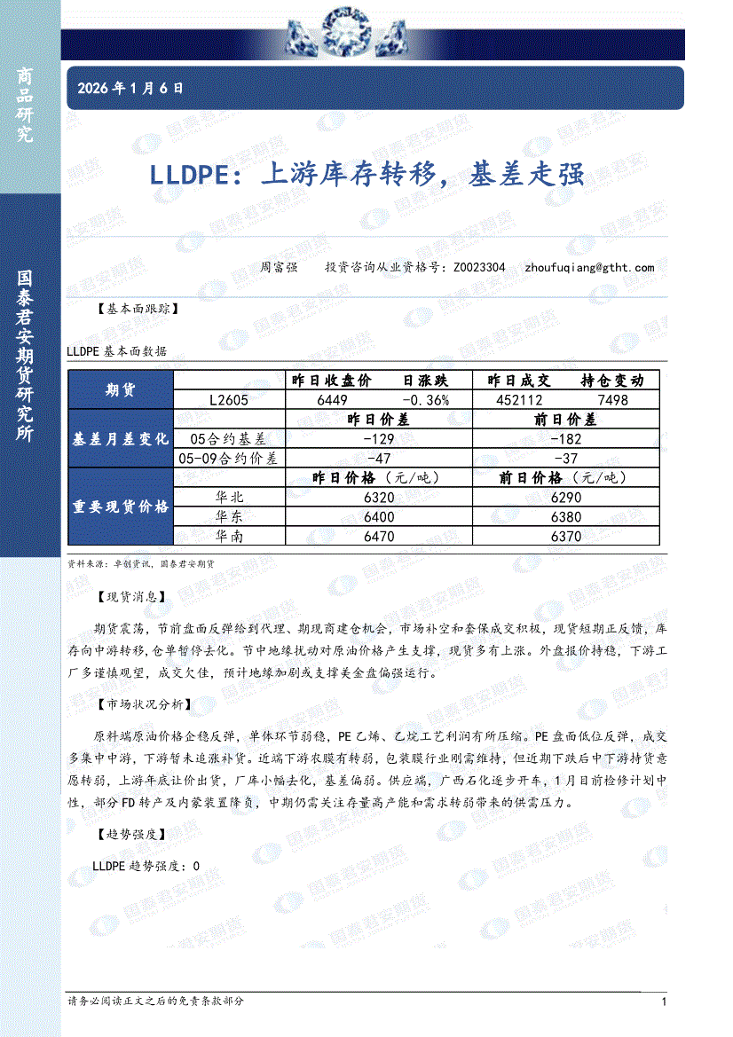 国泰君安期货-LLDPE:上游库存转移,基差走强-260106