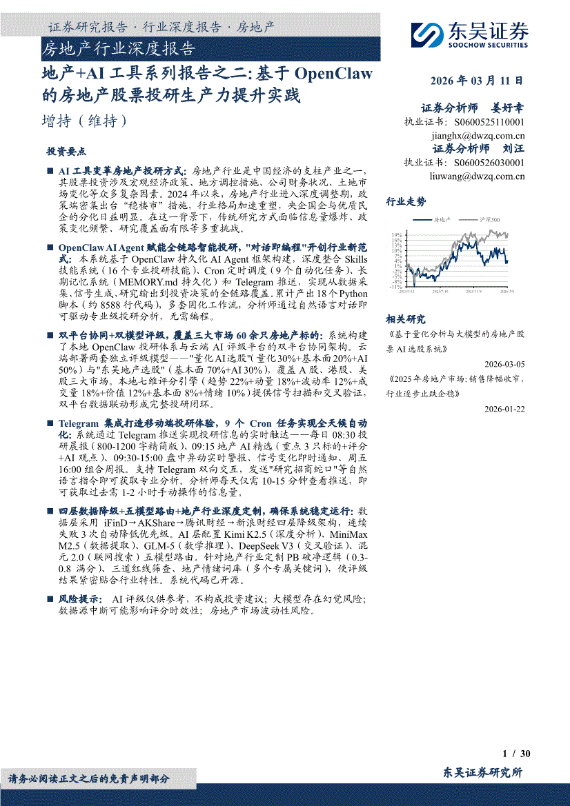 房地产行业:东吴证券-房地产行业深度报告:地产+AI工具系列报告之二,基于OpenClaw的房地产股票投研生产力提升实践-260311