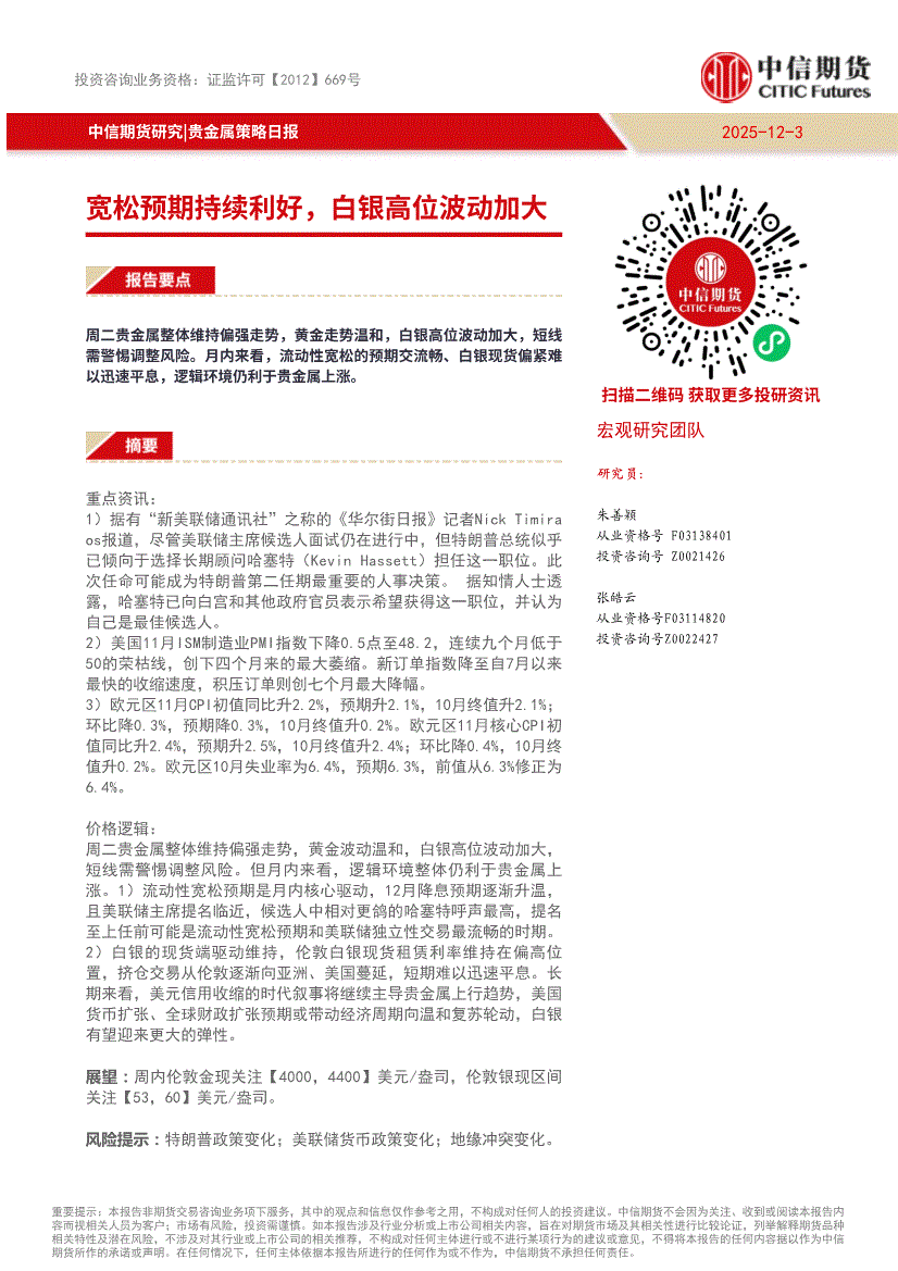 中信期货-贵金属策略日报:宽松预期持续利好,白银高位波动加大-251203