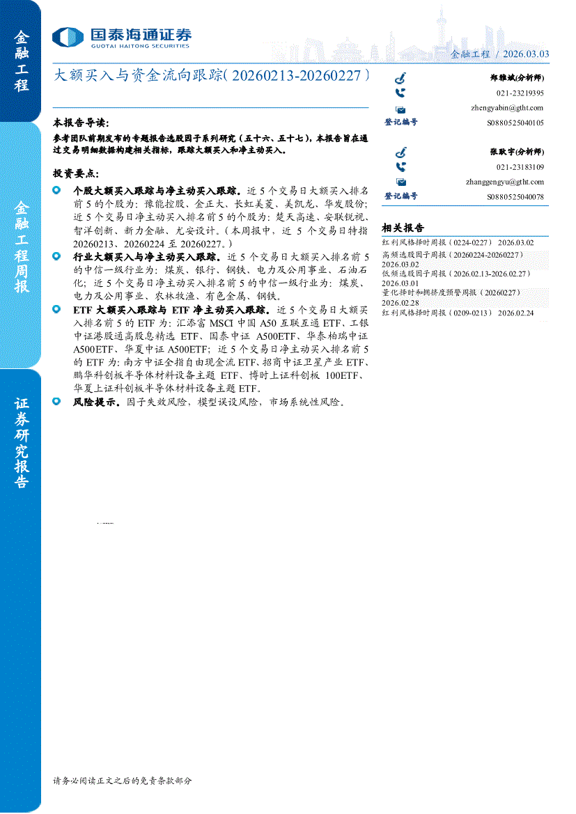 国泰海通证券-大额买入与资金流向跟踪-260303