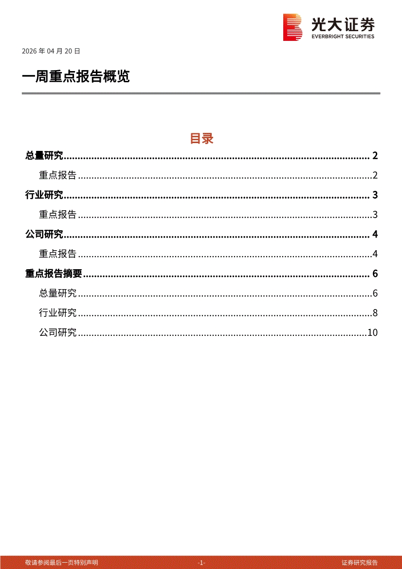 光大证券-一周重点报告概览-260420