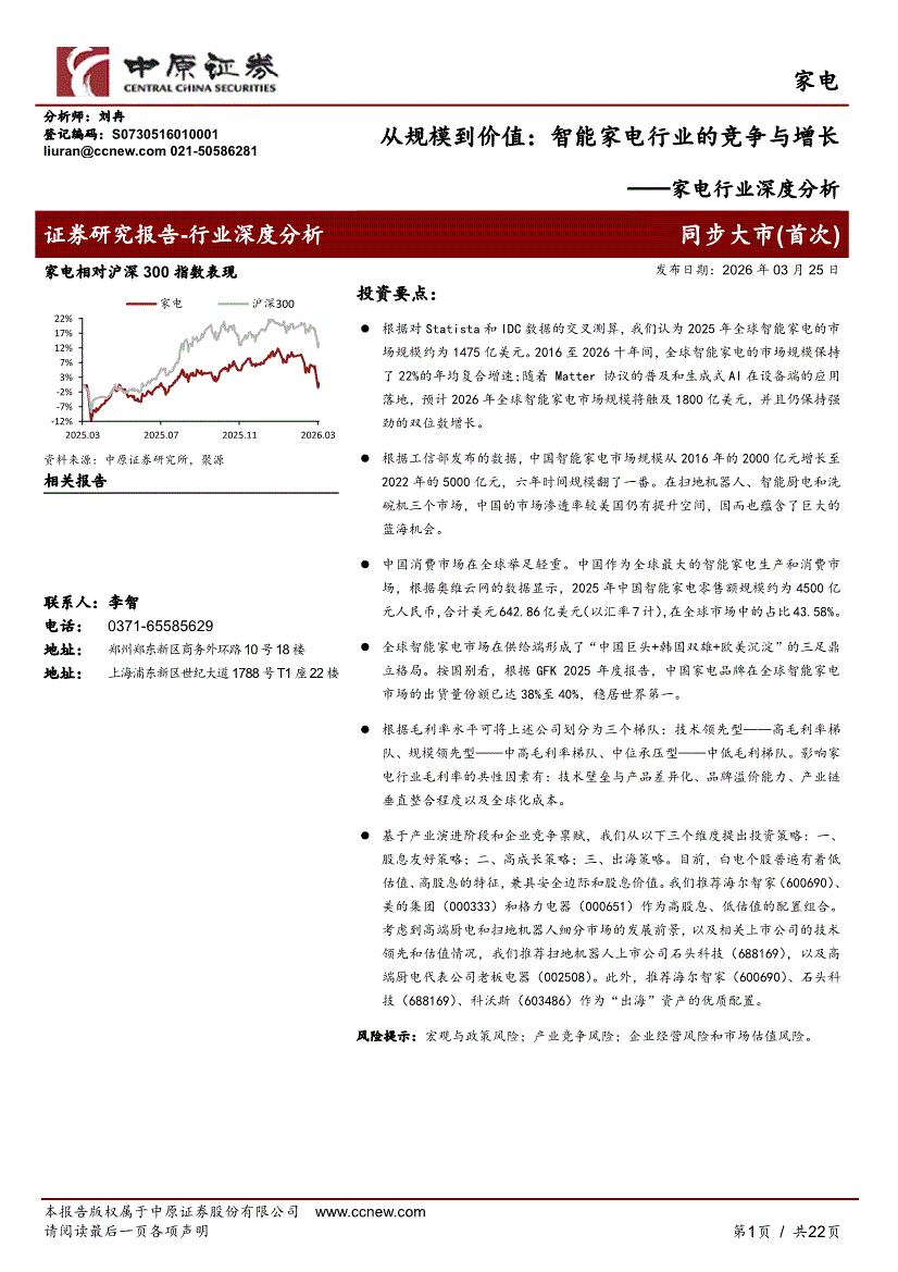 家电行业:中原证券-家电行业深度分析:从规模到价值,智能家电行业的竞争与增长-260325