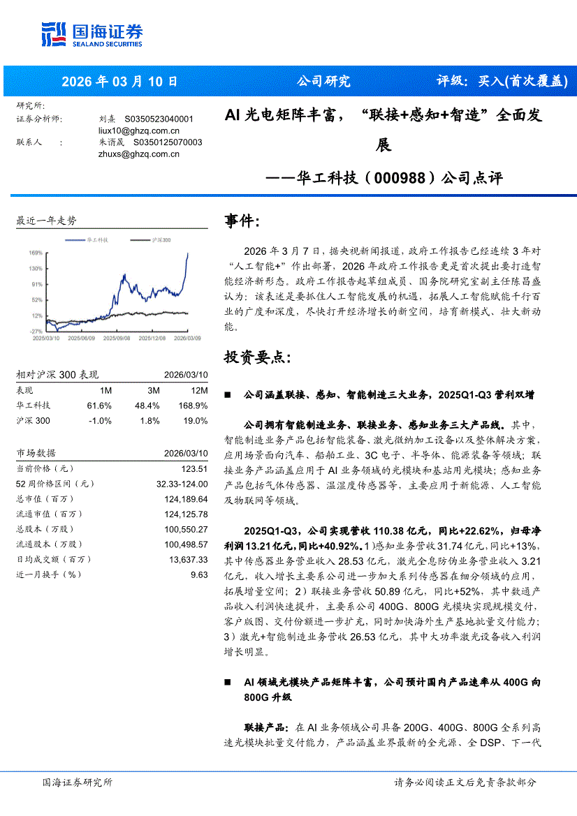 华工科技:国海证券-华工科技-000988-公司点评:AI光电矩阵丰富,“联接+感知+智造”全面发展-260310