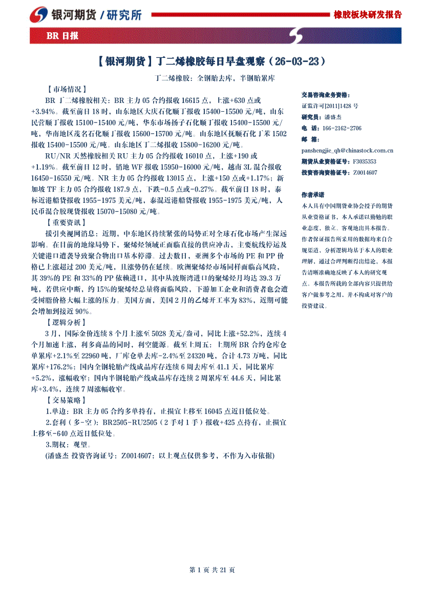 银河期货-丁二烯橡胶每日早盘观察-260323