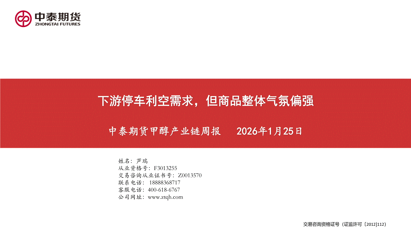 中泰期货-甲醇产业链周报:下游停车利空需求,但商品整体气氛偏强-260125