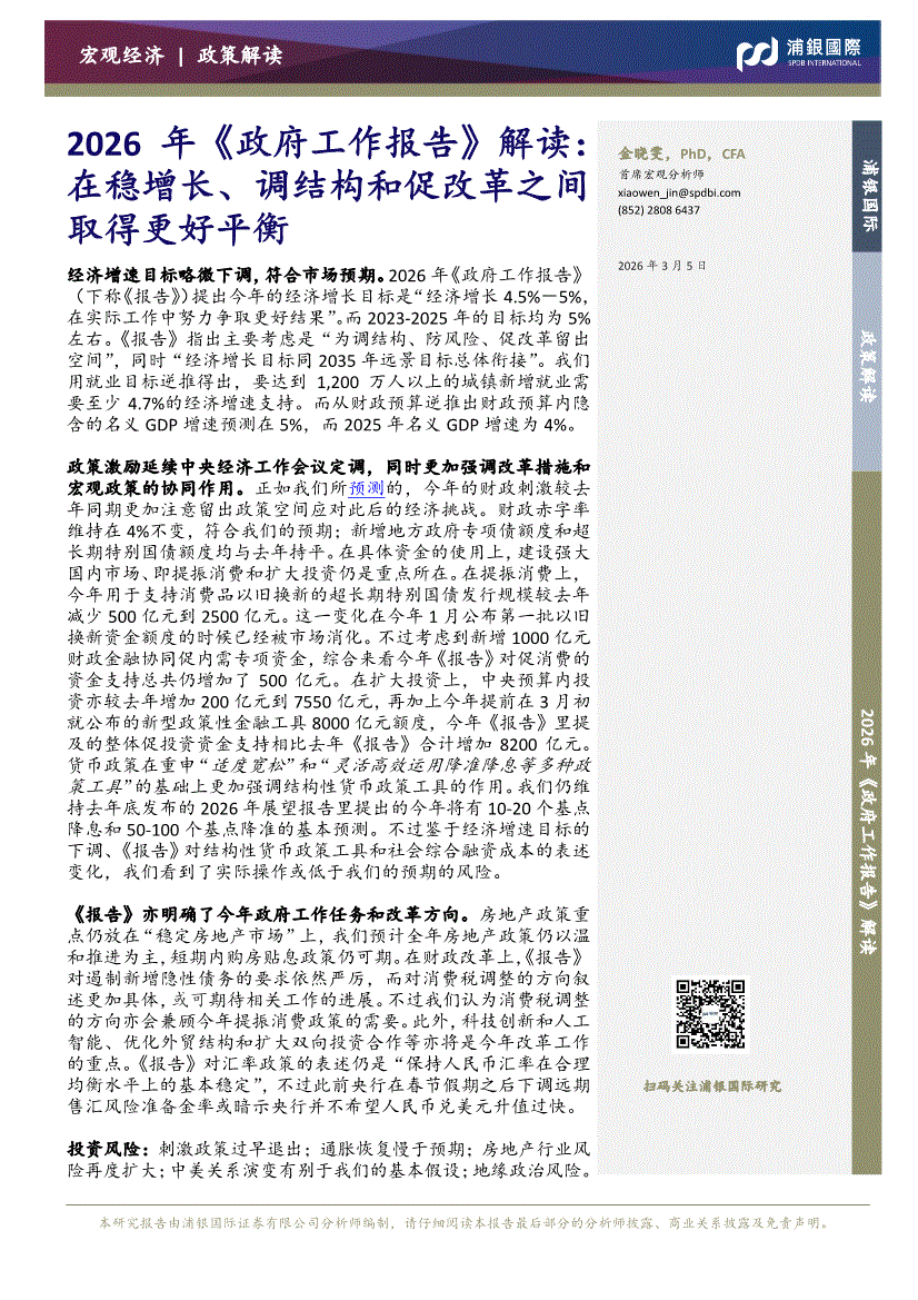 浦银国际-2026年《政府工作报告》解读:在稳增长、调结构和促改革之间取得更好平衡-260305