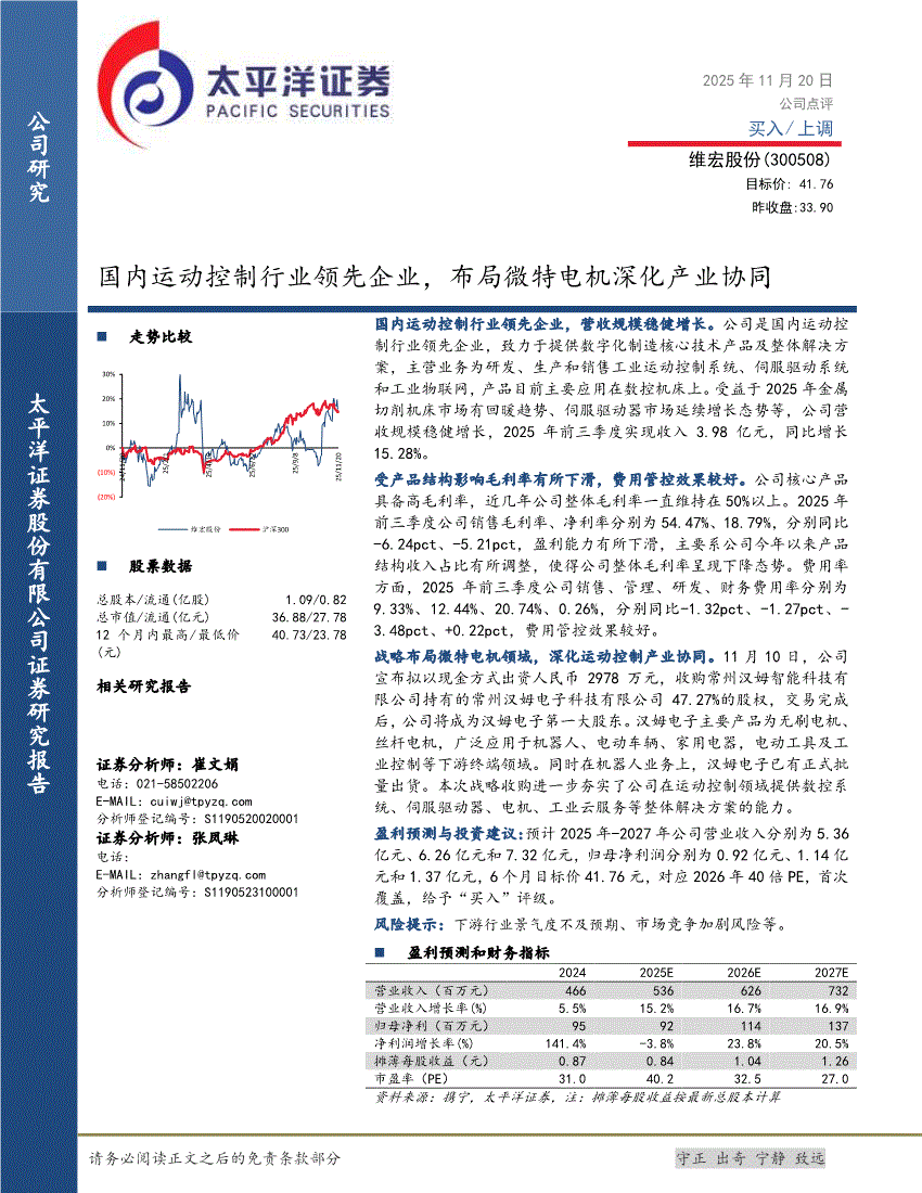 维宏股份:太平洋证券-维宏股份-300508-国内运动控制行业领先企业,布局微特电机深化产业协同-251120