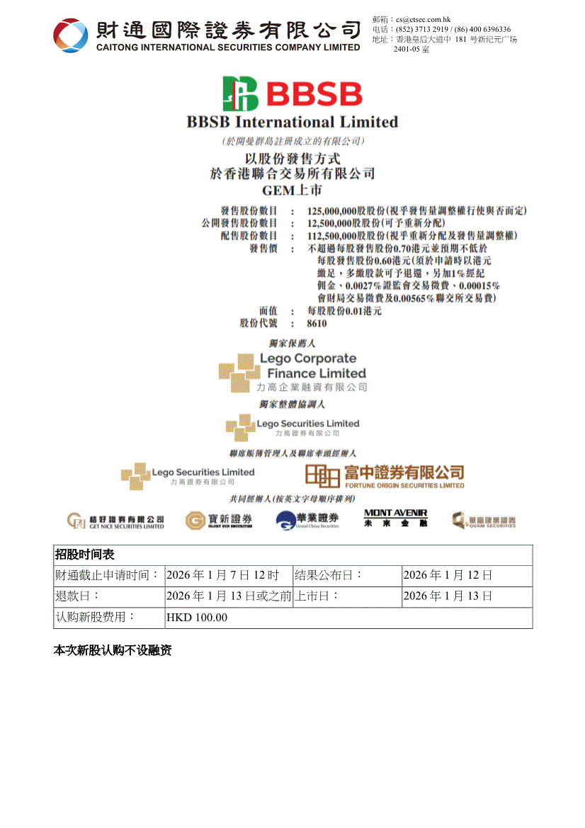 财通国际-新股认购:BBSB INTL(8610.HK)-251231