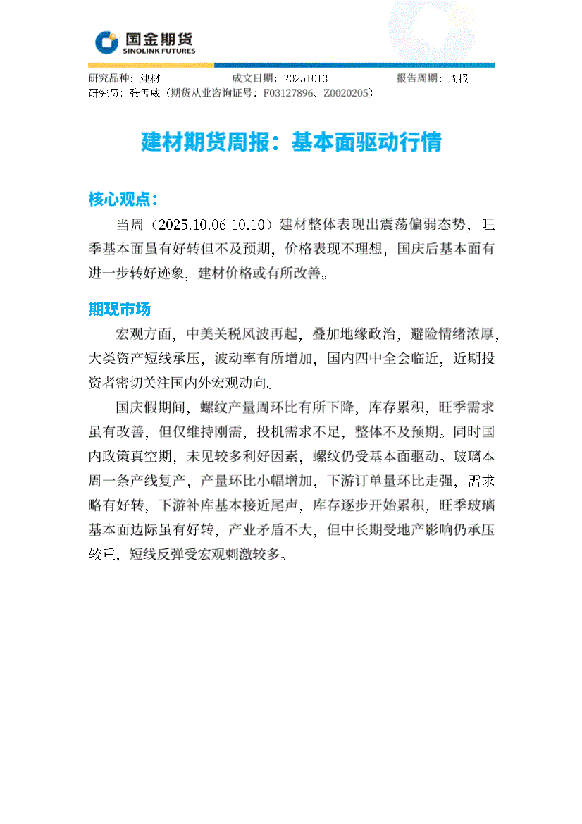 国金期货-建材期货周报:基本面驱动行情-251013