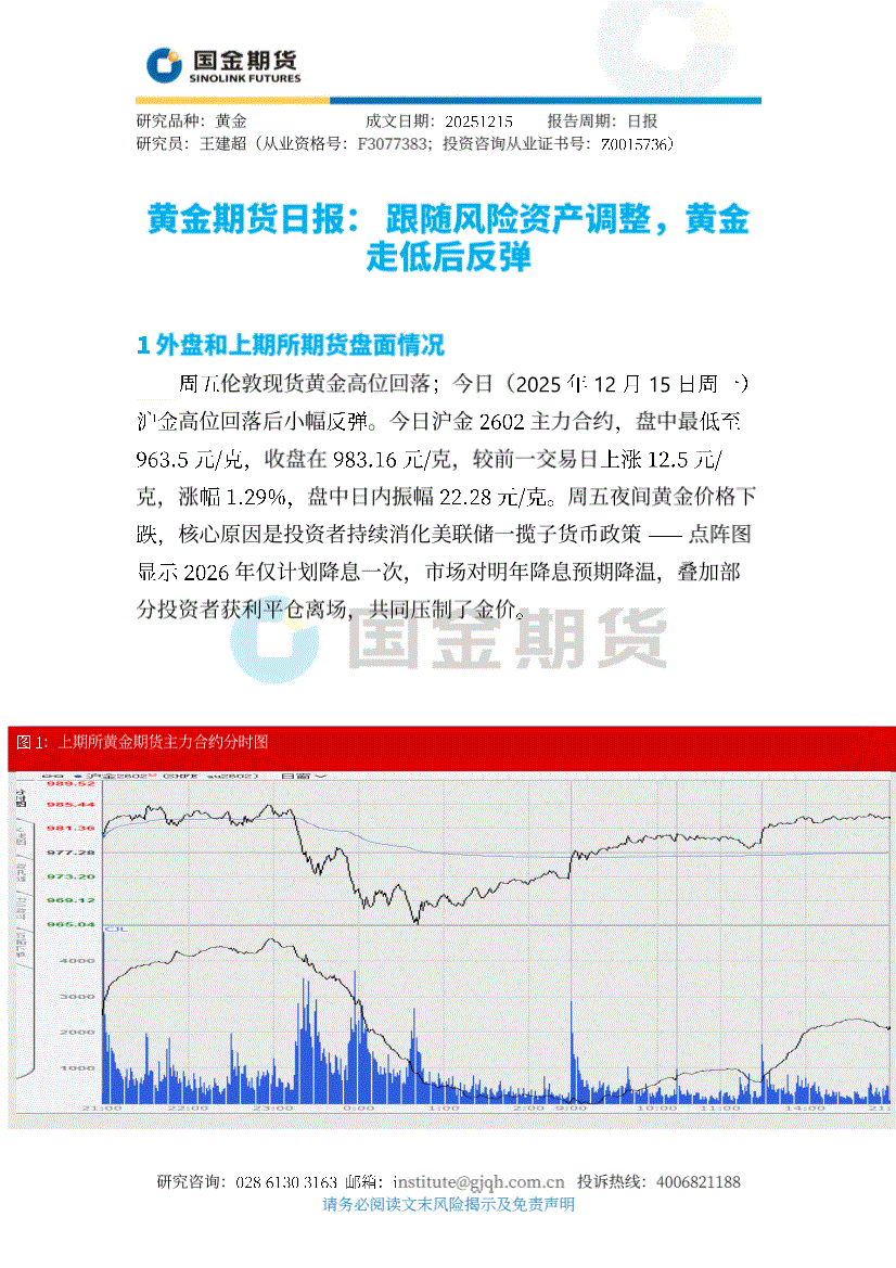 国金期货-黄金期货日报:跟随风险资产调整,黄金走低后反弹-251215
