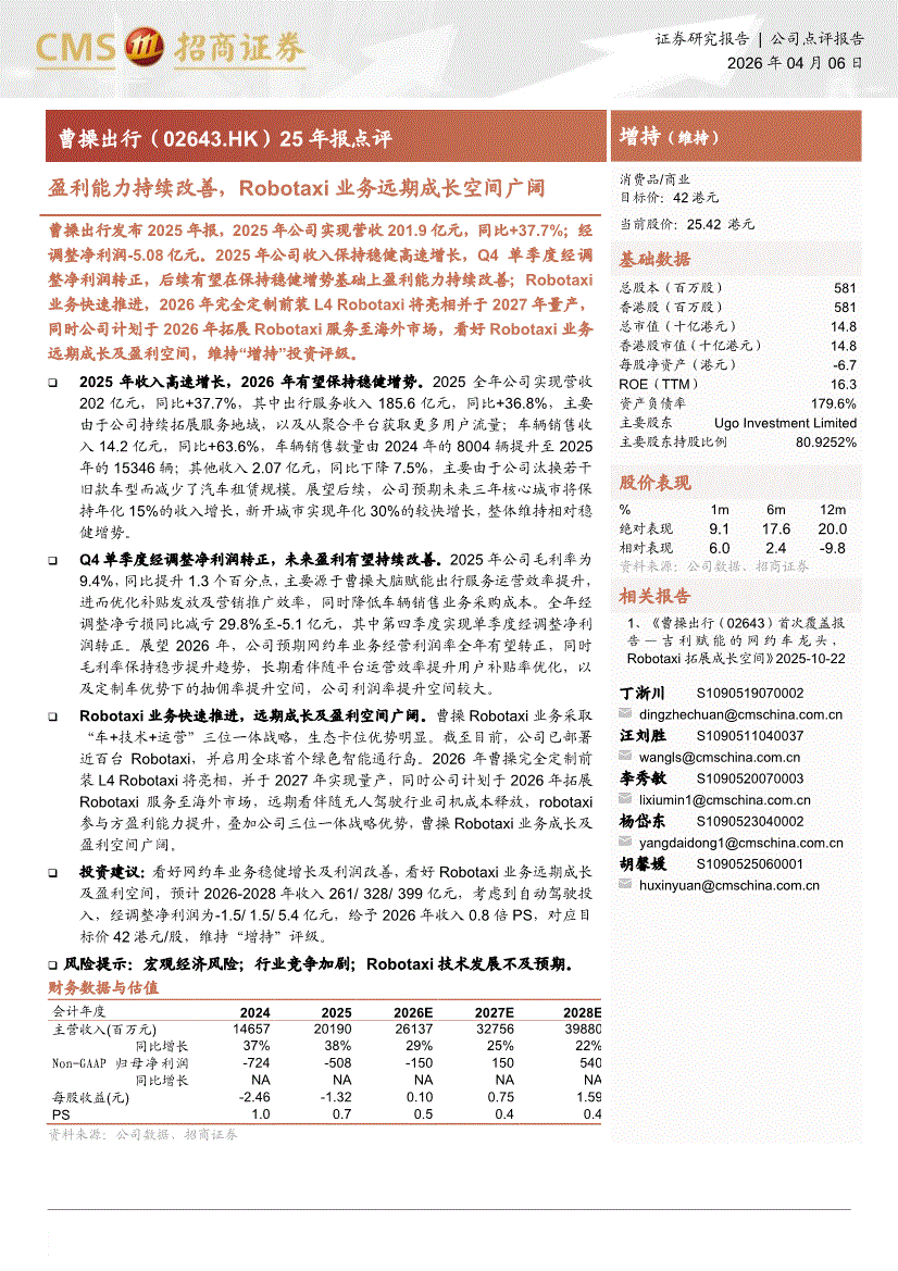 曹操出行:招商证券-曹操出行-2643.HK-25年报点评:盈利能力持续改善,Robotaxi业务远期成长空间广阔-260406