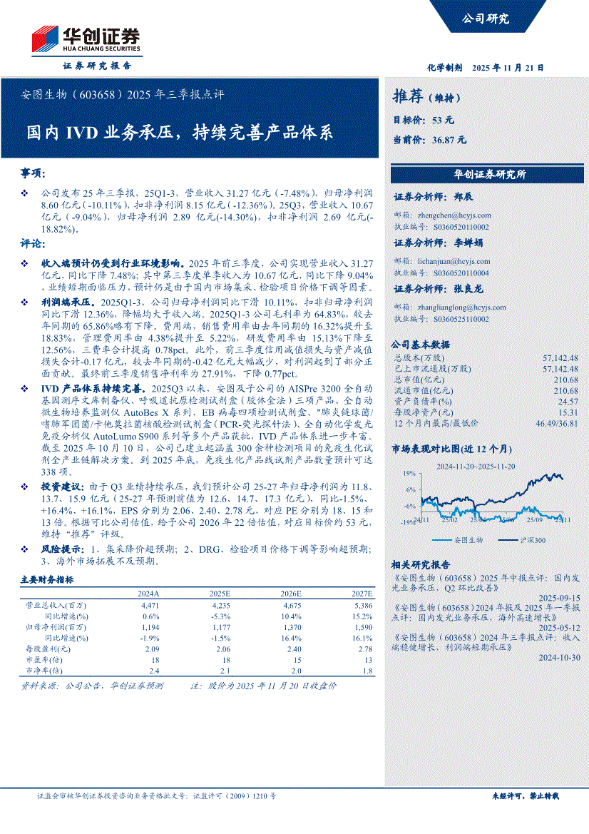安图生物:华创证券-安图生物-603658-2025年三季报点评:国内IVD业务承压,持续完善产品体系-251121