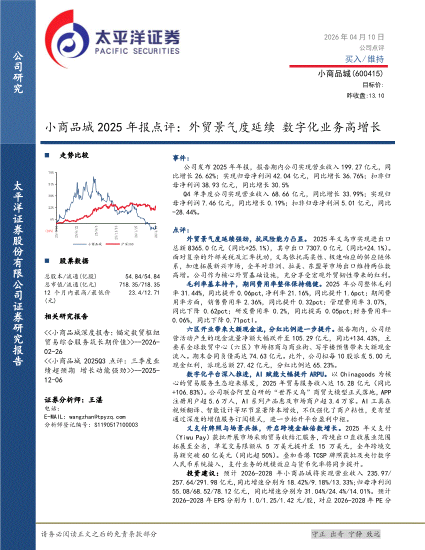 小商品城:太平洋证券-小商品城-600415-2025年报点评:外贸景气度延续,数字化业务高增长-260410