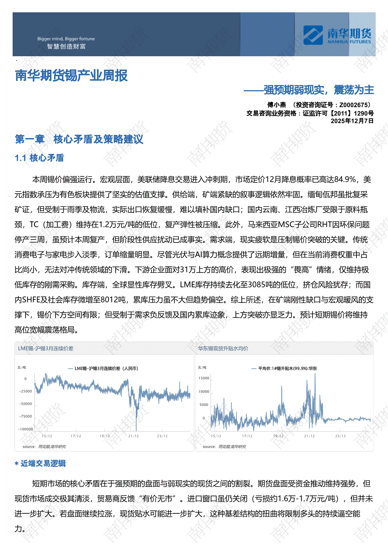 南华期货-锡产业周报:强预期弱现实,震荡为主-251207