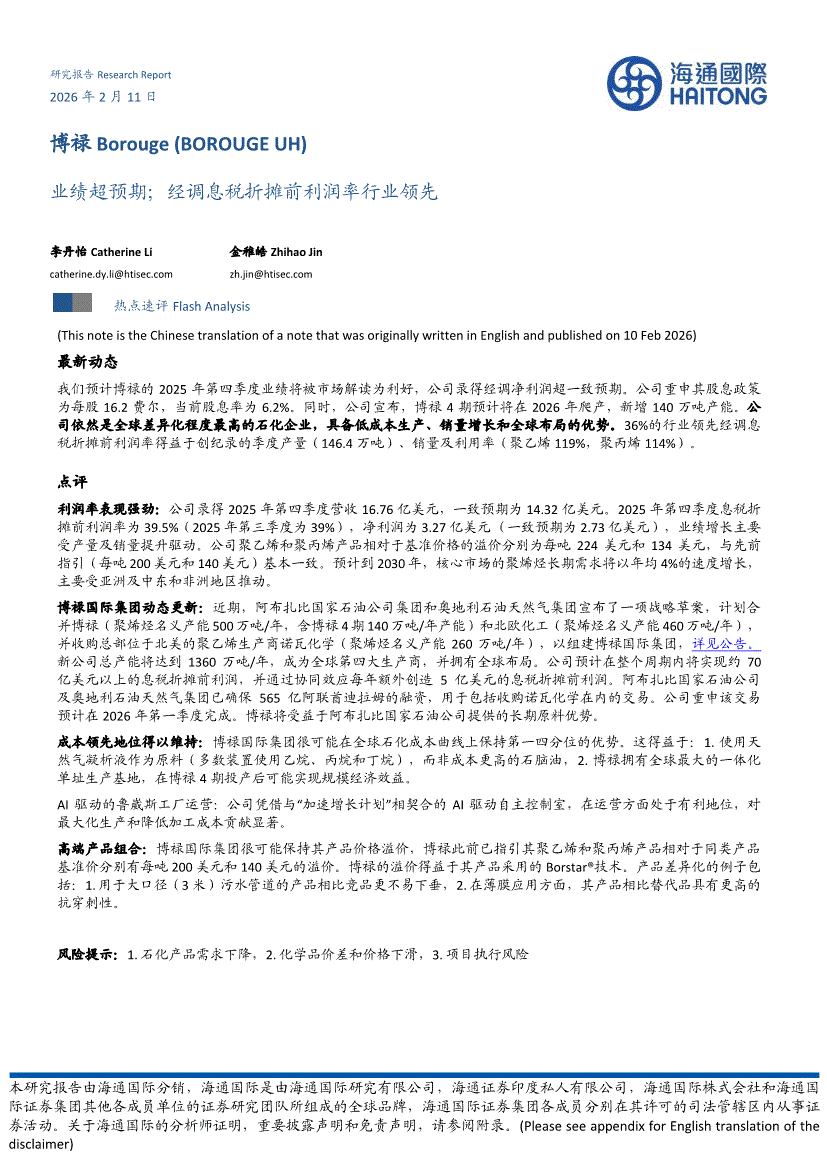 博禄:海通国际-博禄-BOROUGE.UH-业绩超预期;经调息税折摊前利润率行业领先-260211