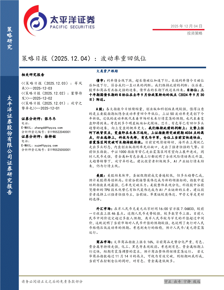 太平洋证券-策略日报:波动率重回低位-251204