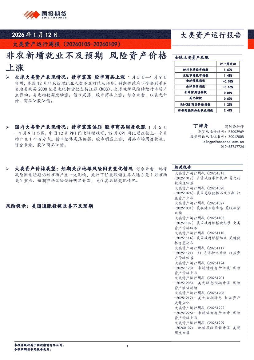 国投期货-大类资产运行周报:非农新增就业不及预期,风险资产价格上涨-260112