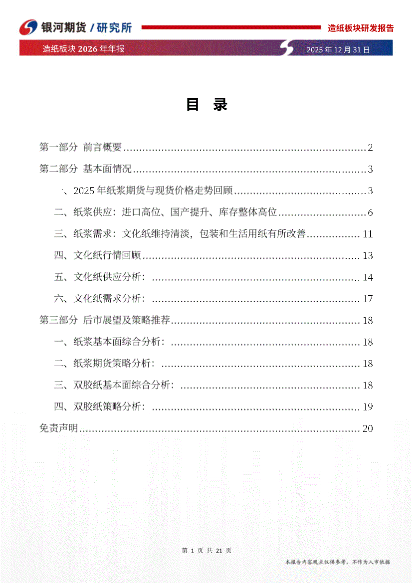 银河期货-造纸板块2026年年报:国产浆替代加速,定价权逐步提升,双胶纸需依赖低利润,清退旧产能-251231
