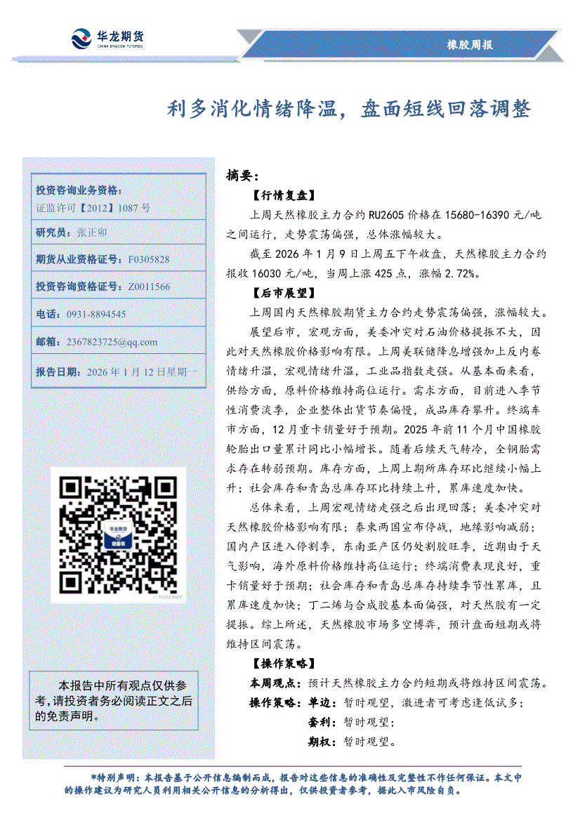 华龙期货-橡胶周报:利多消化情绪降温,盘面短线回落调整-260112