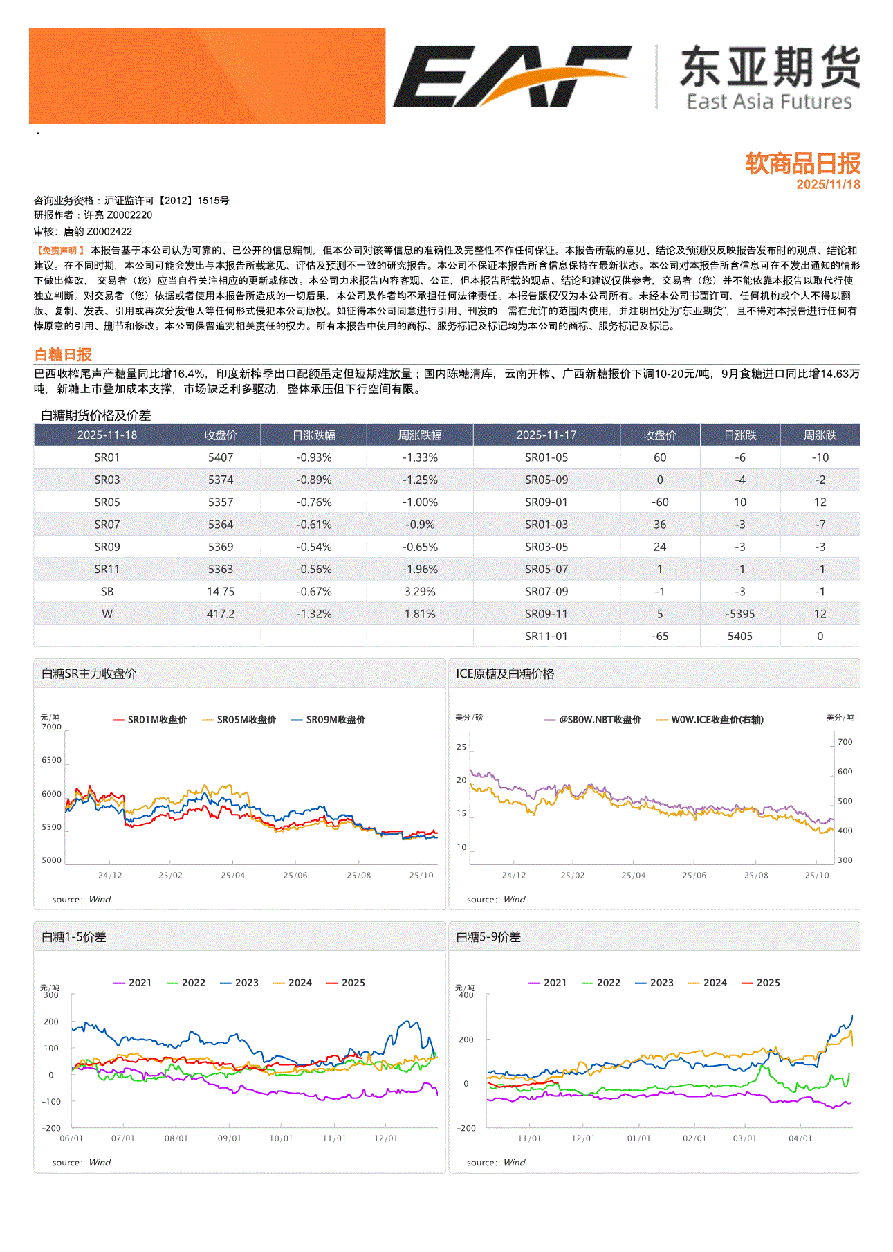 上海东亚期货-软商品日报-251118