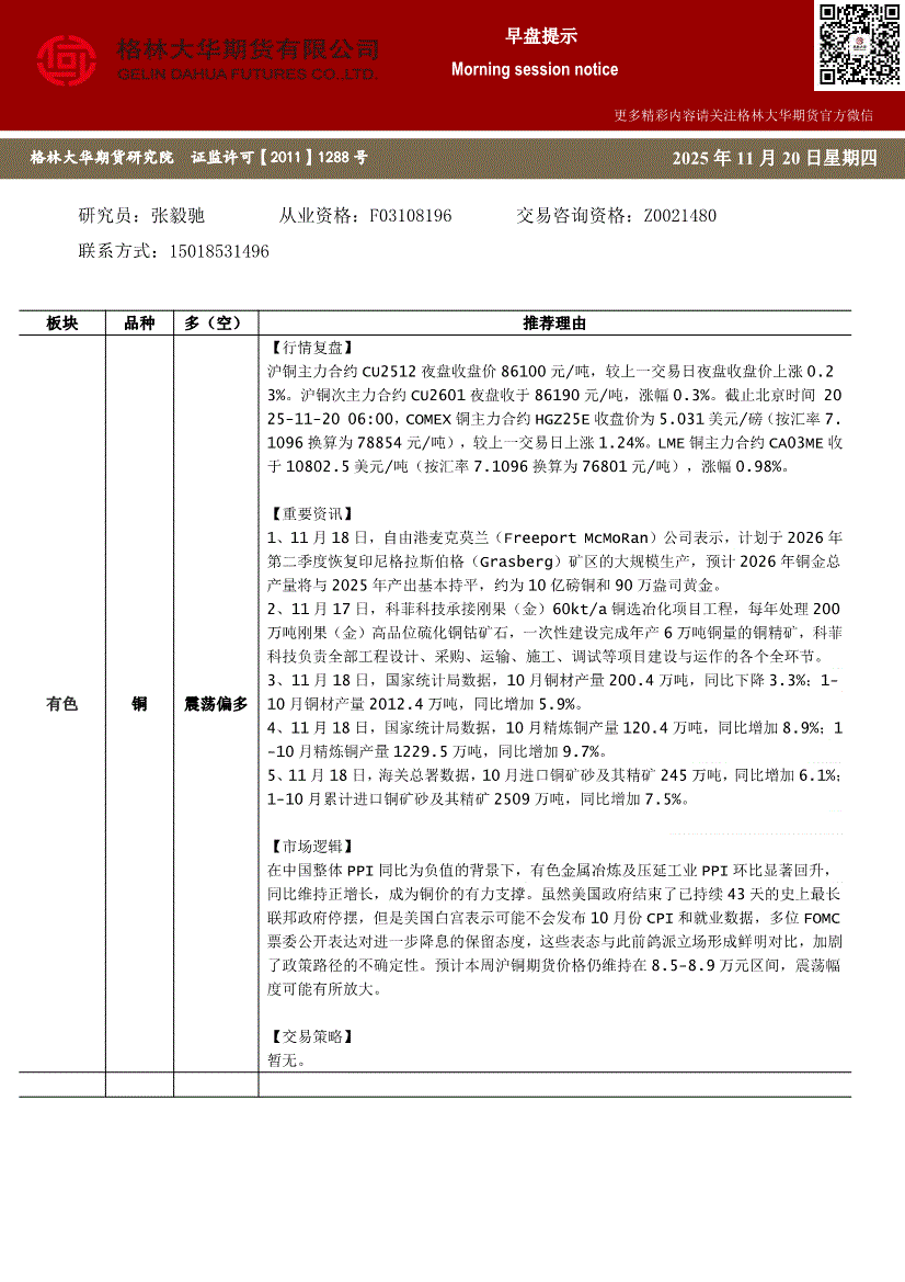 光大证券-铜行业周报:10月下游消费商精炼铜库存创2015年以来新低-251116