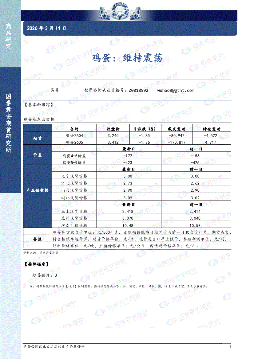 国泰君安期货-鸡蛋:维持震荡-260311