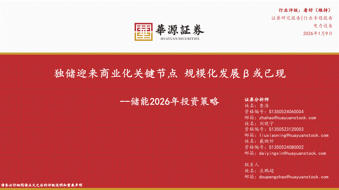 储能行业:华源证券-储能行业2026年投资策略:独储迎来商业化关键节点,规模化发展β或已现-260109