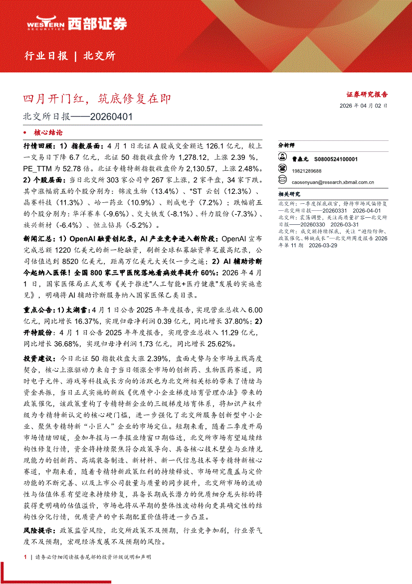 西部证券-北交所日报:四月开门红,筑底修复在即-260402