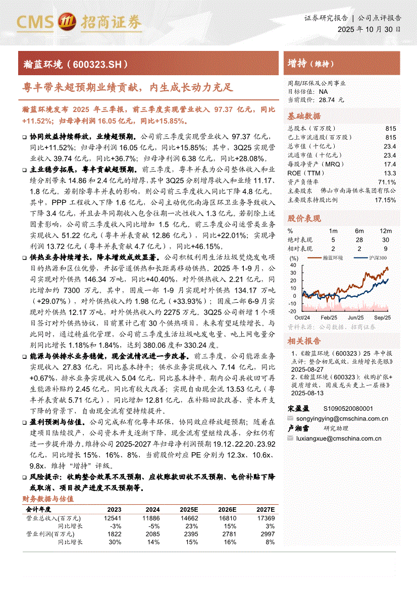 瀚蓝环境:招商证券-瀚蓝环境-600323-粤丰带来超预期业绩贡献,内生成长动力充足-251030
