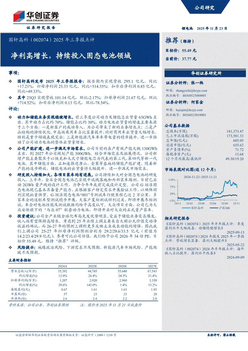 国轩高科:华创证券-国轩高科-002074-2025年三季报点评:净利高增长,持续投入固态电池领域-251123