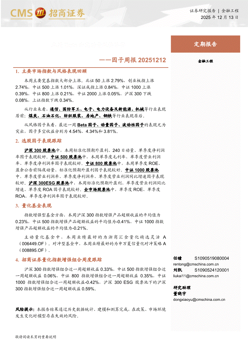 招商证券-因子周报:本周Beta和高动量风格显著-251213
