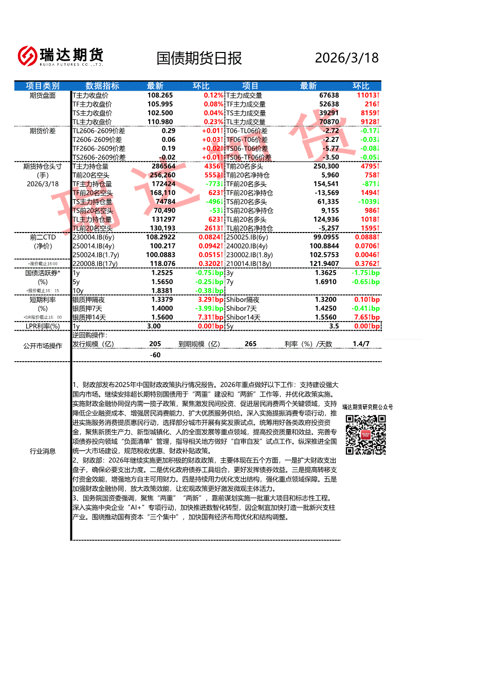 瑞达期货-国债期货日报-260318