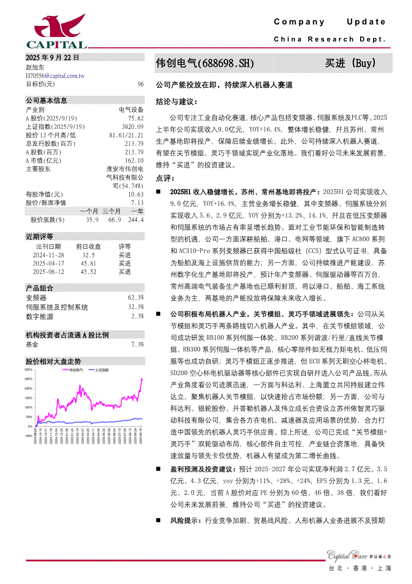 伟创电气:群益证券-伟创电气-688698-公司产能投放在即,持续深入机器人赛道-250922