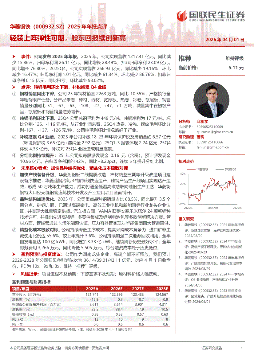 华菱钢铁:国联民生证券-华菱钢铁-000932-2025年年报点评:轻装上阵弹性可期,股东回报续创新高-260401