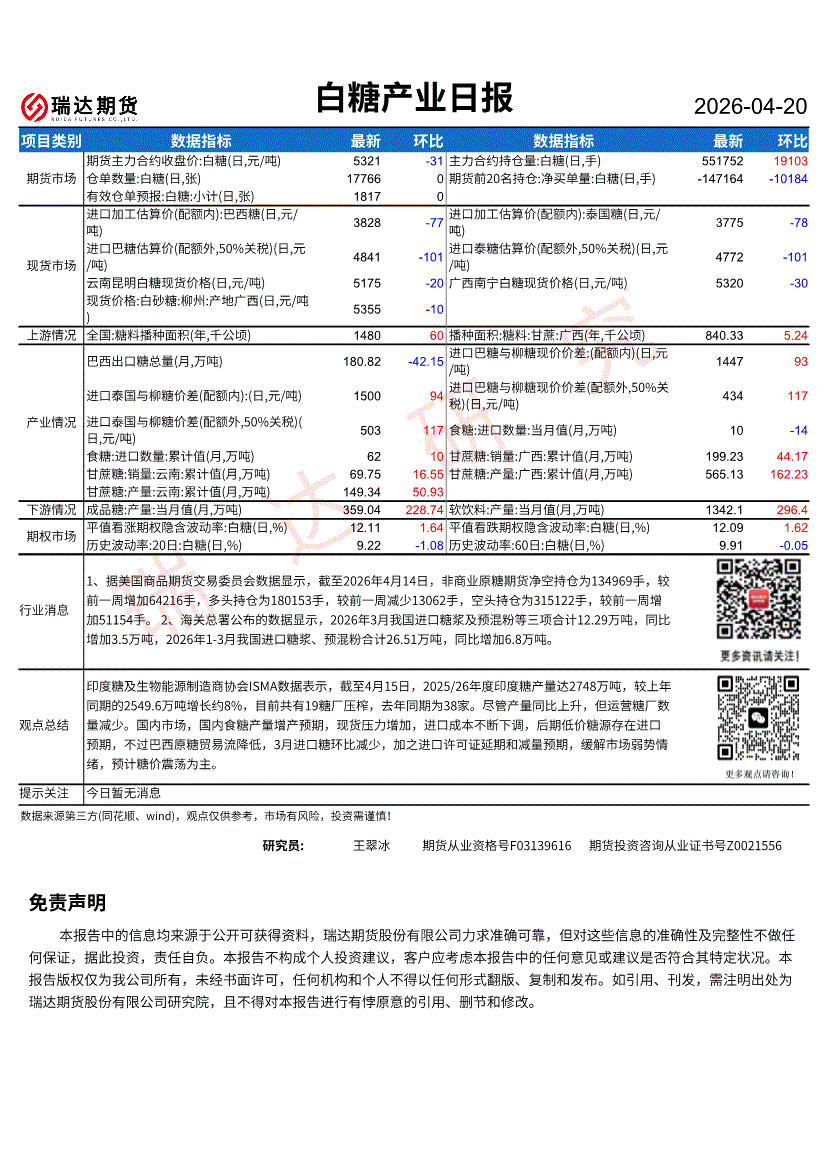 瑞达期货-白糖产业日报-260420