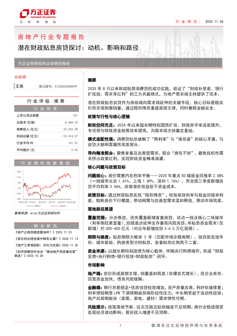 房地产行业:方正证券-房地产行业专题报告:潜在财政贴息房贷探讨,动机、影响和路径-251126