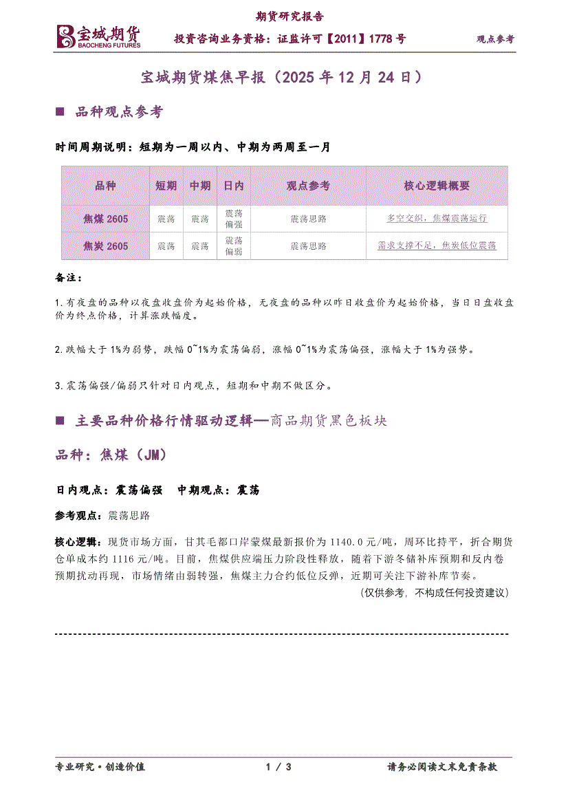 宝城期货-煤焦日报:多空交织,煤焦低位震荡-251223