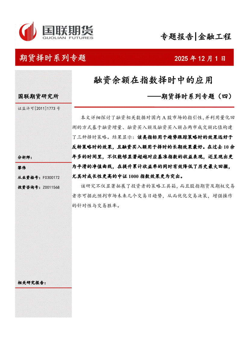 国联期货-期货择时系列专题(四):融资余额在指数择时中的应用-251201