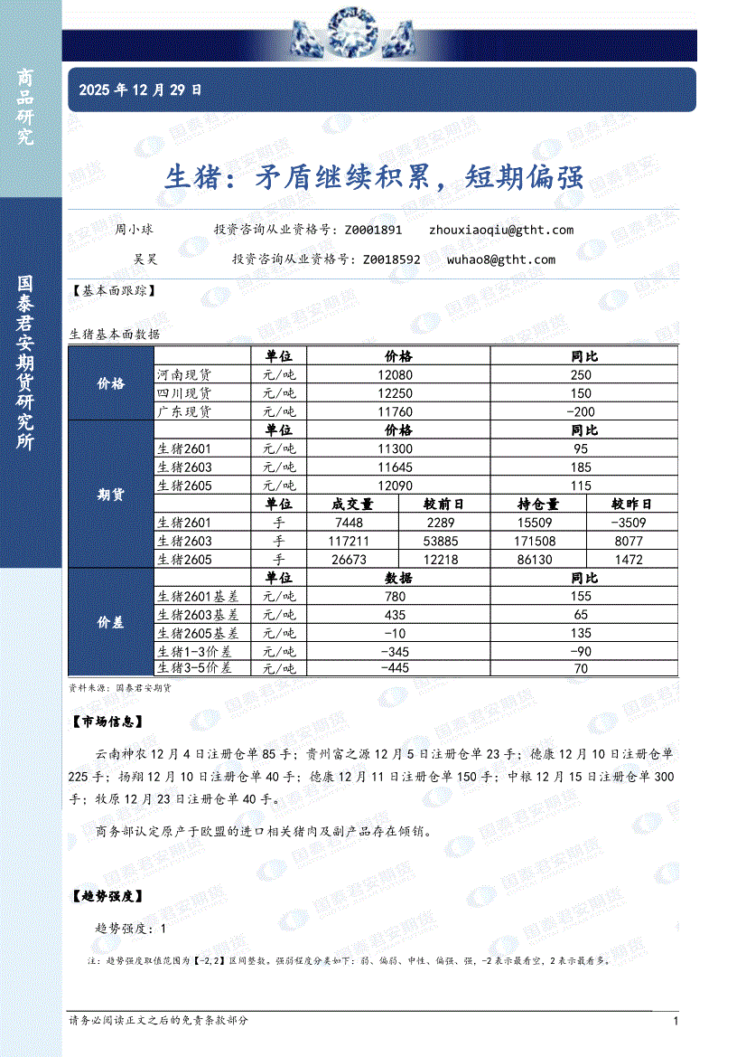 国泰君安期货-生猪:矛盾继续积累,短期偏强-251229