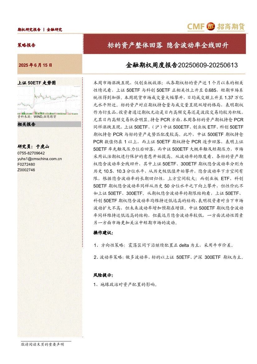 招商期货-金融期权周度报告:标的资产整体回落,隐含波动率重回低位-250622