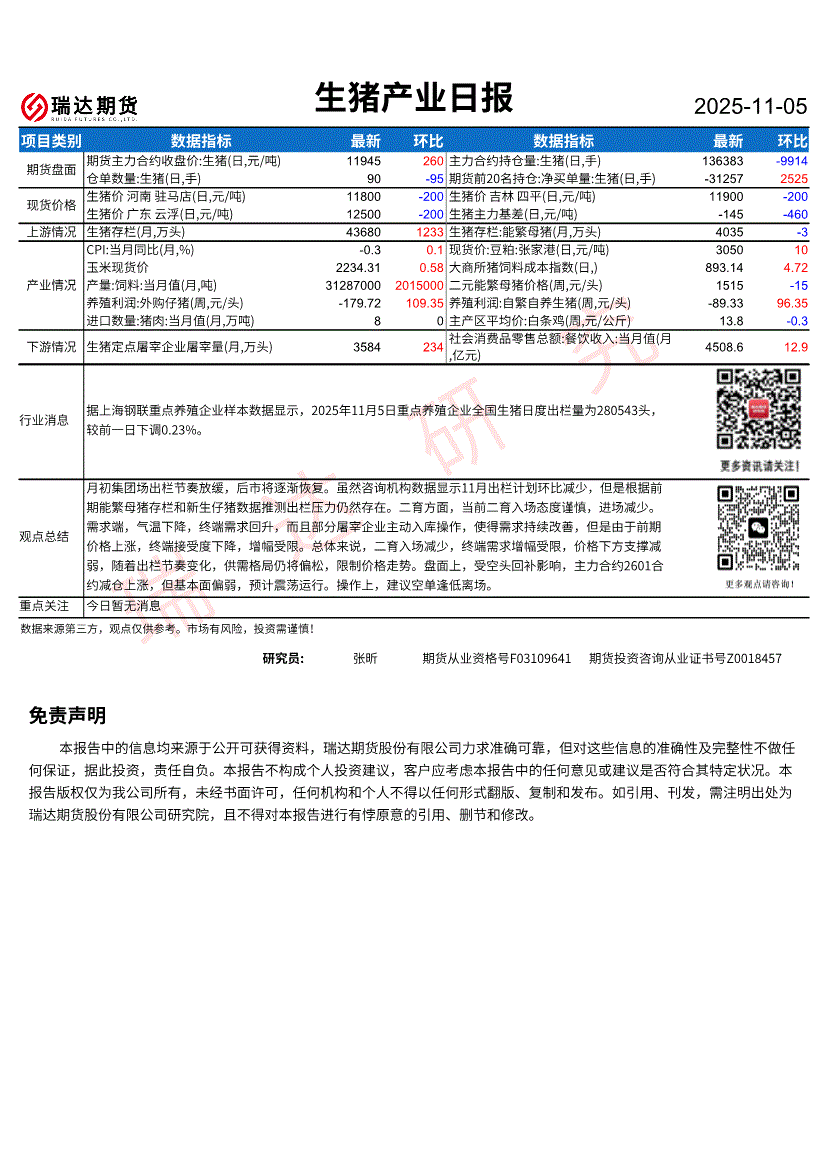 瑞达期货-生猪市场周报:二育入场降温,预计生猪偏弱运行-251017